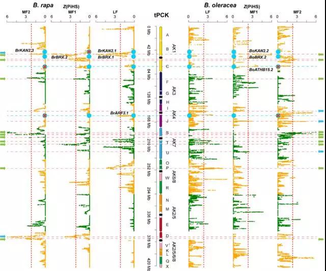 圖3. ?蕓薹(左)和甘藍(右)亞基因組的選擇信號檢測