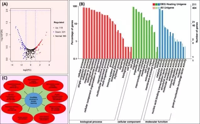 (C):番茄果實(shí)成熟過程中circRNA顯著富集的GO terms.