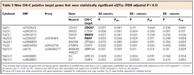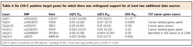 捕獲Hi-C測(cè)序鑒定33個(gè)乳腺癌風(fēng)險(xiǎn)基因座潛在的110個(gè)靶基因