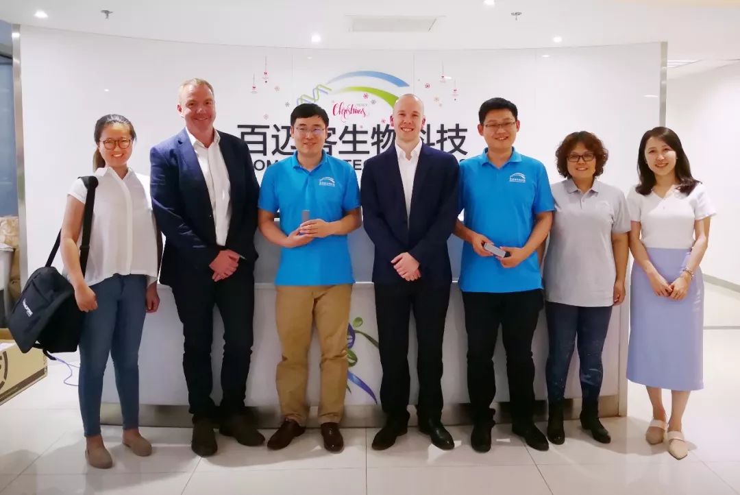 The Biomarker and Oxford Nanopore teams: Richard Compton, VP Commercial Operations at Oxford Nanopore, Thomas Bray, China Business Manager together with Eva and Lin from Technical Support.