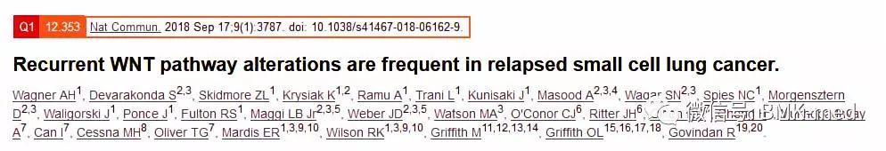 ? ? ? 近日,Alex H. Wagner等研究者發(fā)表在“NATURE COMMUNICATIONS”上的文章中,作者通過高通量測序?qū)CLC的化療耐受性的分子機制進行了研究,作者對12例來自處于診斷時期和復發(fā)時期的患者的配對SCLC腫瘤樣本,以及18例患者的非配對復發(fā)樣本,進行全外顯子組測序。在復發(fā)樣本鑒定到了多個體細胞拷貝數(shù)變異,包括ABCC1的增加,以及MYCLMSH2MSH6的缺失。作者還對30例患者中18例復發(fā)樣本進行了腫瘤RNA測序。結(jié)果表明,ASCL1低表達亞型和WNT激活在復發(fā)樣本中富集。通過敲低APC激活化療敏感性SCLC細胞系中的WNT信號,可以誘導產(chǎn)生化療耐受性。此外,體外誘導的耐化療細胞系中,WNT活性增加??偟膩碚f,此研究結(jié)果表明WNT信號激活是復發(fā)性SCLC化療耐受性的一種分子機制。