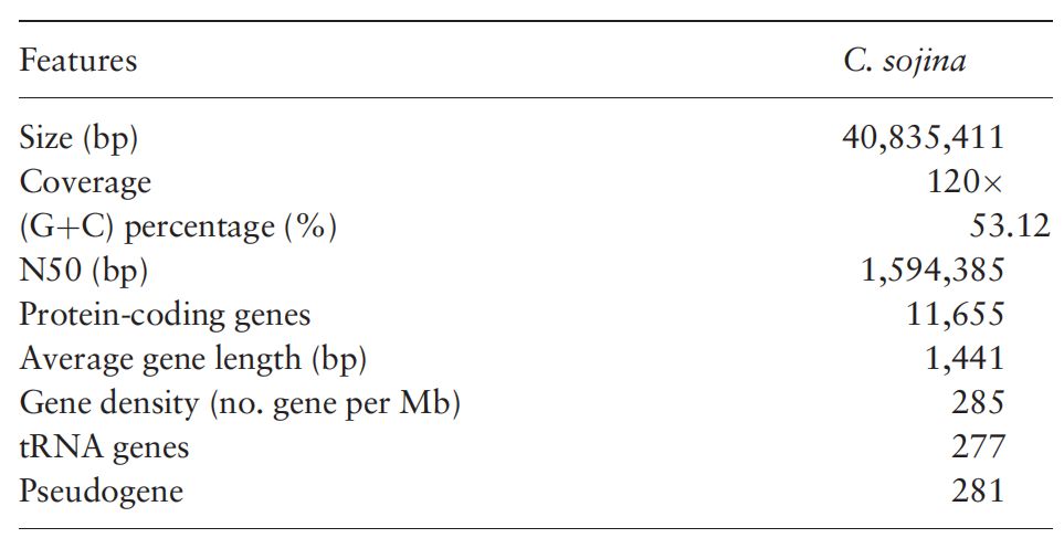 題目:Genome sequencing and comparativegenomics reveal the?potential?pathogenic mechanism of Cercospora sojina Hara onsoybean