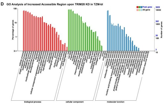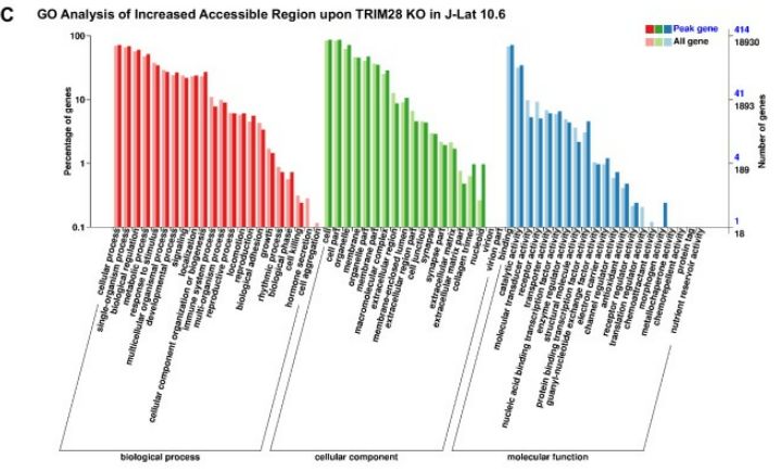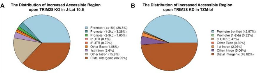 • ATAC-seq:J-Lat 10.6或TZM-bl細胞系,研究TRIM28缺失后HIV-1啟動子的染色質可及性