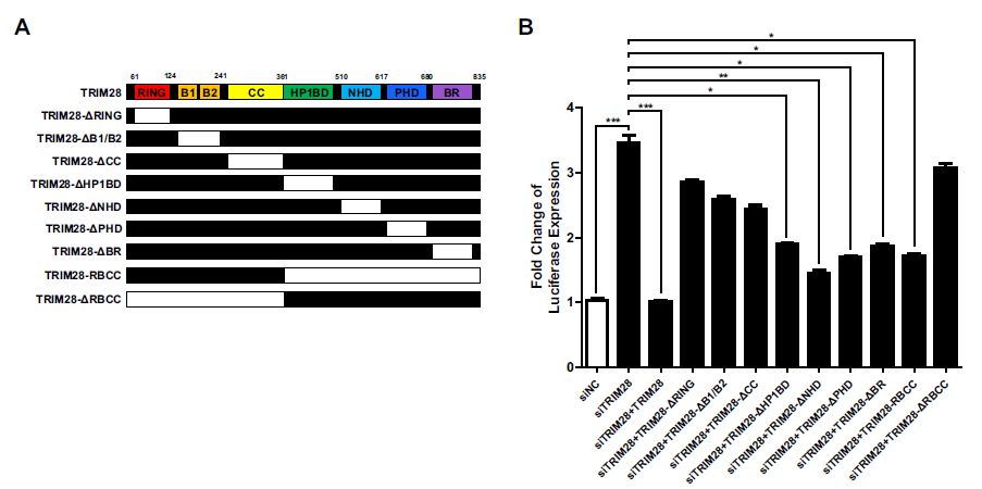 • 蛋白功能閾缺失實驗:探究TRIM28的功能及重要功能域
