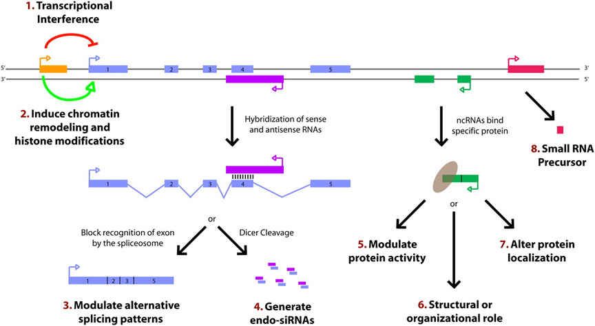 1.在基因上游啟動子區(qū)轉(zhuǎn)錄,干擾下游基因的表達;