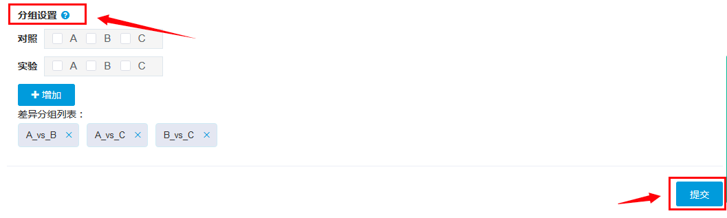 在進行分組設(shè)置時,我們可以自由添加分組,設(shè)置自己的組名,并在組名之后添加用于差異分析的樣品。