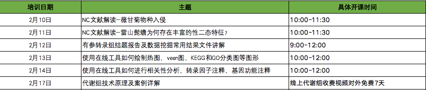 來(lái)來(lái)來(lái),看這里,還有一個(gè)假期漲知識(shí)的免費(fèi)福利袋,自2月10號(hào)開(kāi)始,連續(xù)5天,我們的技術(shù)同事與你一起從NC文章入手到結(jié)題報(bào)告、常見(jiàn)圖表的實(shí)現(xiàn),讓你在家也可輕松漲知識(shí)。具體內(nèi)容及時(shí)間安排: