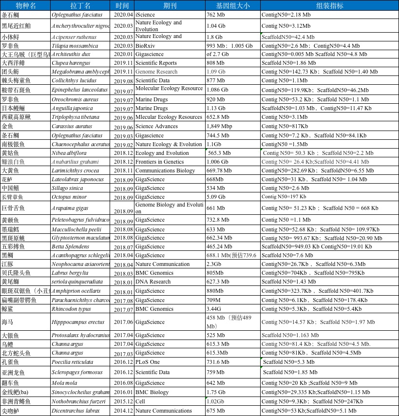 2020年5月,中國水產(chǎn)科學(xué)研究院黃海水產(chǎn)研究所陳四清研究員團(tuán)隊(duì)與北京百邁客生物科技有限公司合作完成了超高質(zhì)量的綠鰭馬面鲀基因組,相關(guān)研究成果發(fā)表在知名期刊Molecular Ecology Resources上。本次研究基于納米孔測(cè)序技術(shù)(Nanopore)和染色體構(gòu)象捕獲技術(shù)(Hi-C)完成的基因組僅包含242個(gè)Contigs,Contig N50高達(dá)22.46 Mb,并將99.44%序列掛載到20條染色體上,實(shí)現(xiàn)了海洋魚類基因組組裝質(zhì)量質(zhì)的飛躍!