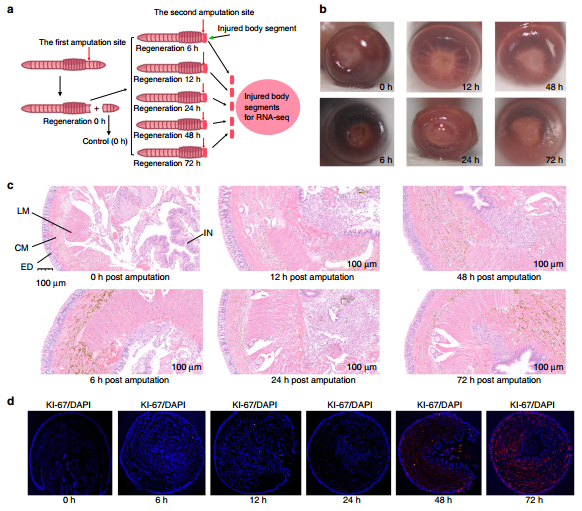 進(jìn)一步利用10xGenomics單細(xì)胞轉(zhuǎn)錄組測序深度解析蚯蚓再生機(jī)制,蚯蚓再生早期72小時后損傷愈合部位細(xì)胞的高比例組分是干細(xì)胞,且多能干細(xì)胞在蚯蚓再生早期過程中具有重要作用。此項研究提供了一些蚯蚓再生的候選分子細(xì)胞學(xué)機(jī)制。