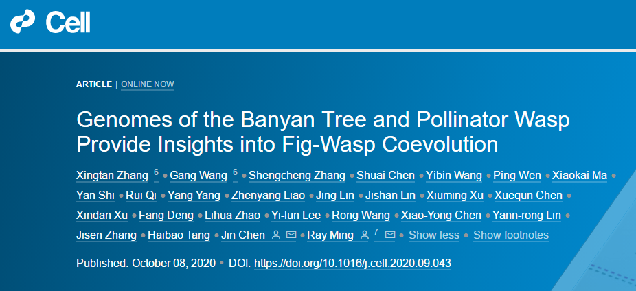 2020年10月8日,福建農(nóng)林大學(xué)基因組與生物技術(shù)中心聯(lián)合中國科學(xué)院西雙版納熱帶植物園等多個單位共同合作的榕-蜂協(xié)同進(jìn)化研究成果以“Genomes of the banyan tree and pollinator wasp provide insights into fig-wasp coevolution”為題在國際期刊Cell上在線發(fā)表。文中利用北京百邁客生物科技有限公司的Hi-C建庫測序技術(shù),并結(jié)合明瑞光課題組獨(dú)立研發(fā)的ALLHiC算法成功的將小葉榕和對葉榕組裝至染色體水平,并對榕樹氣生根、性別決定基因、榕樹進(jìn)化以及榕蜂共生體系專性協(xié)同進(jìn)化等進(jìn)行研究。該研究為明瑞光教授團(tuán)隊(duì)繼18、19年連續(xù)兩年論文刊登期刊Nature Genetics[1-2]后的又一次突破性成果!
