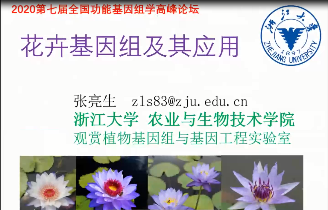 浙江大學(xué)張亮生教授對超高質(zhì)量的藍星睡蓮基因組構(gòu)建、睡蓮的花發(fā)育ABC基因鑒定、睡蓮的花香和花色合成途徑等研究結(jié)果進行了詳述。并闡述了可作為培育藍色花瓣花卉的候選基因。除此之外還展示了滿天星、百合及其它知名花卉基因組,以及相關(guān)基因編輯研究近況與結(jié)果。張老師團隊的研究將有望建立具有市場潛力的模式花卉品種。