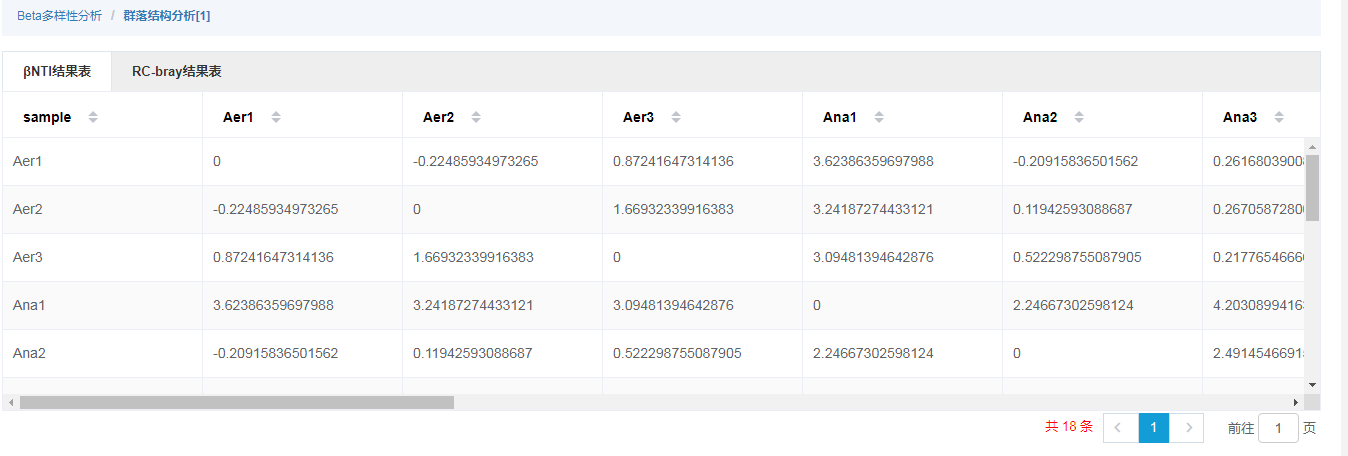 分析結(jié)果包含2個表格,分別記錄兩兩樣品之間βNTI和RCbray的值。