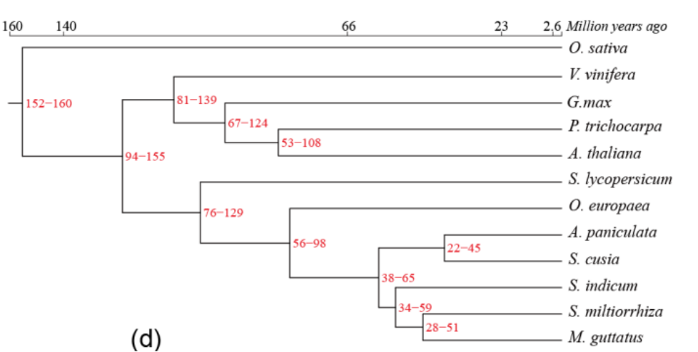 通過與其它種基因組進行比較,挖掘不同種間的系統(tǒng)進化關(guān)系。根據(jù)各類生物間的親緣關(guān)系的遠近,把各類生物安置在有分枝的樹狀的圖表上,簡明地表示生物的進化歷程和親緣關(guān)系。借助于化石時間矯正,可以得到有分化時間的物種樹,從而獲得物種之間的親緣關(guān)系和分歧時間,有利于闡明物種的進化歷史。?