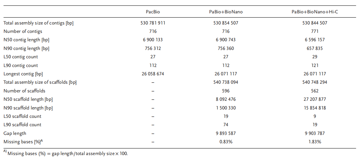 1. 材料:C.×hytivus自交第14代(S14);測(cè)序:~69X PacBio+~104X Hi-C+Bionano;轉(zhuǎn)錄組輔助基因預(yù)測(cè):Illumina RNA-Seq 及 PacBio Iso-Seq