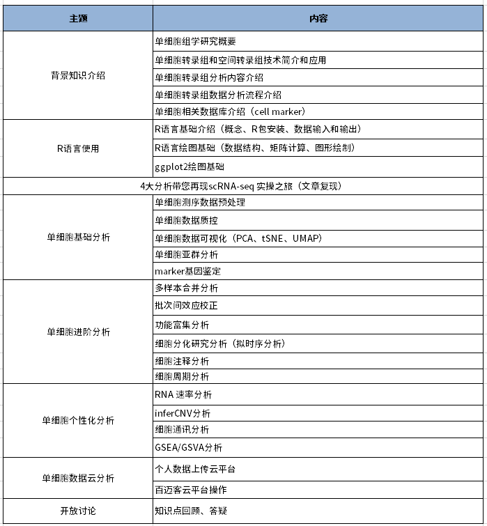 細(xì)胞和空間組學(xué)技術(shù)的快速發(fā)展正在開(kāi)啟生命科學(xué)的時(shí)空多維新時(shí)代,為復(fù)雜疾病的細(xì)胞異質(zhì)性研究提供新視角,引領(lǐng)了生物學(xué)從“時(shí)間”維度走向“空間”維度,廣泛應(yīng)用于動(dòng)植物生長(zhǎng)發(fā)育、腫瘤精準(zhǔn)治療研究等方向。為了促進(jìn)單細(xì)胞數(shù)據(jù)挖掘和分析,百邁客特開(kāi)展的單細(xì)胞數(shù)據(jù)分析課程,將為您呈現(xiàn)細(xì)胞分群、細(xì)胞分化研究、marker基因鑒定等分析內(nèi)容,幫助研究者實(shí)現(xiàn)了單細(xì)胞數(shù)據(jù)更快、更準(zhǔn)、更高的分析轉(zhuǎn)化。