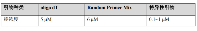 逆轉(zhuǎn)錄引物一般包含三種:oligo dT,Random Primer Mix和特異性引物??蛻艨梢愿鶕?jù)個人需求進行選擇。