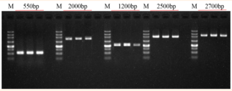 圖4:以1μl人肝癌細胞RNA為模板,用BiomarkerScript Ⅱ 1st Strand cDNA Synthesis Kit進行逆轉(zhuǎn)錄,得到cDNA產(chǎn)物。再以100?ng cDNA為模板,用Biomarker HS 2× HF Master Mix進行PCR擴增,將得到的產(chǎn)物進行瓊脂糖凝膠電泳,結(jié)果所示:擴增條帶單一且產(chǎn)量高。