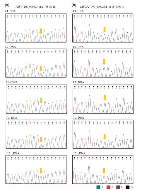 作者的結(jié)果相似,通過結(jié)合RNA-seq和RT-PCR,發(fā)現(xiàn)在非活性X染色體上特異表達的X-非活性特異轉(zhuǎn)錄物XIST僅在I.2和II.2的Xq28重復(fù)染色體上表達。這表明Xq28重復(fù)染色體是不活躍的。另外還發(fā)現(xiàn),兩個女性的Xq28重復(fù)等位基因上的MECP2和IRAK1(受XCI影響的基因)沒有轉(zhuǎn)錄表達。這解釋了為什么這兩名女性,特別是I.2,是無癥狀攜帶者。同時,作者推測,除了DNA甲基化之外,其他因素也在維持XCI狀態(tài),一種額外的抑制機制可能發(fā)生在非甲基化X染色體的轉(zhuǎn)錄水平,以抵消MECP2復(fù)制的有害表型效應(yīng)。根據(jù)XCI,作者的發(fā)現(xiàn)為MECP2重復(fù)綜合征知識及其在女性中的表型后果增加了新的見解,這對遺傳和產(chǎn)前咨詢具有重要意義。