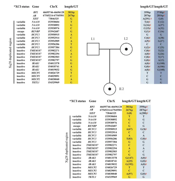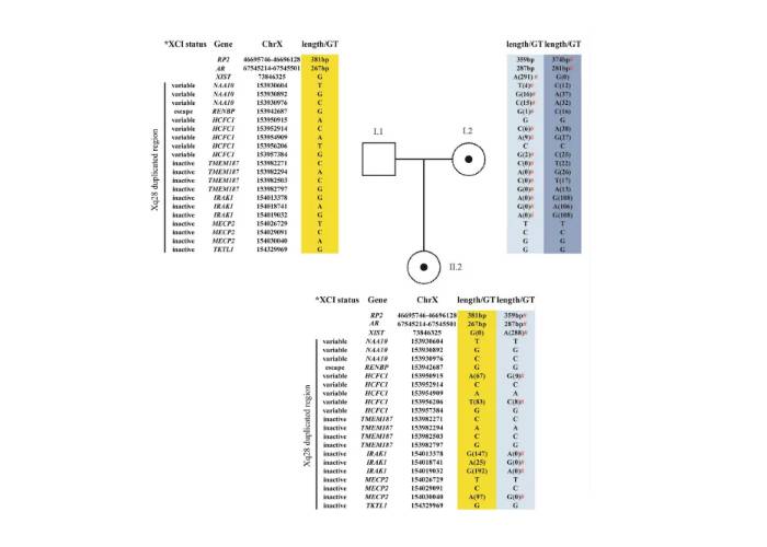 二、AR和RP2分析表明,女性I.2和II.2具有極度傾斜的XCI