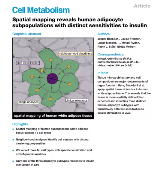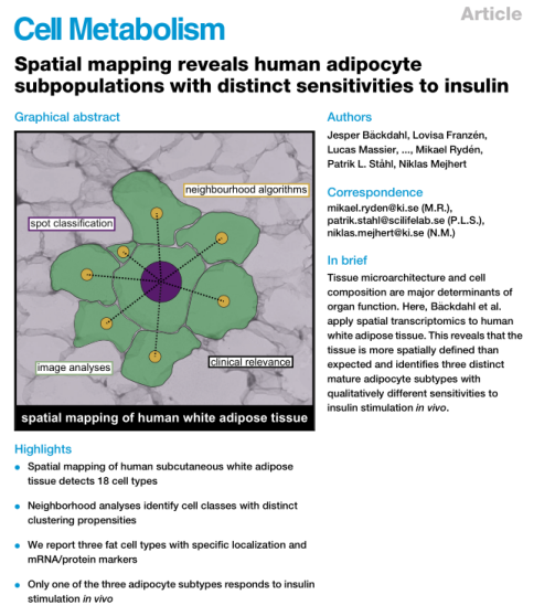 中文題目:空間圖譜揭示人類脂肪細(xì)胞亞群對胰島素有不同的敏感性 期刊名稱:Cell Metabolism