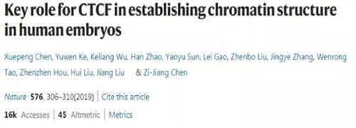 文獻(xiàn)名稱:Key role for CTCF in establishing chromatin structure in human embryos