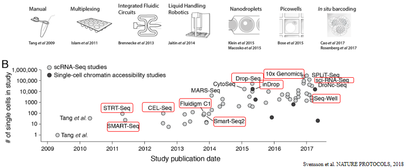 圖1 單細胞測序技術(shù)發(fā)展中通量的變化
