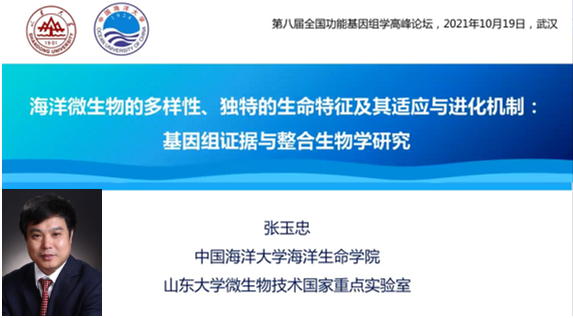 山東大學(xué)張玉忠教授講述了“海洋微生物的多樣性、獨(dú)特的生命特征及其適應(yīng)與進(jìn)化機(jī)制:基因組分析與整合生物學(xué)研究。”張老師團(tuán)隊(duì)首先從基因組層面,系統(tǒng)揭示了深海、極地海域微生物的多樣性及生物地理分布特征;然后,揭示了深海、極地海域微生物獨(dú)特的生命特征及極端環(huán)境適應(yīng)與進(jìn)化的基因組學(xué)證據(jù)。在此基礎(chǔ)上,從微生物生理學(xué)、遺傳學(xué)、生物化學(xué)與結(jié)構(gòu)生物學(xué)等多個(gè)層面,系統(tǒng)闡明深海、極地海域微生物獨(dú)特的生命特征、環(huán)境適應(yīng)與生態(tài)效應(yīng)的分子機(jī)制,為開發(fā)利用深海、極地海域微生物及其基因資源奠定理論基礎(chǔ)。