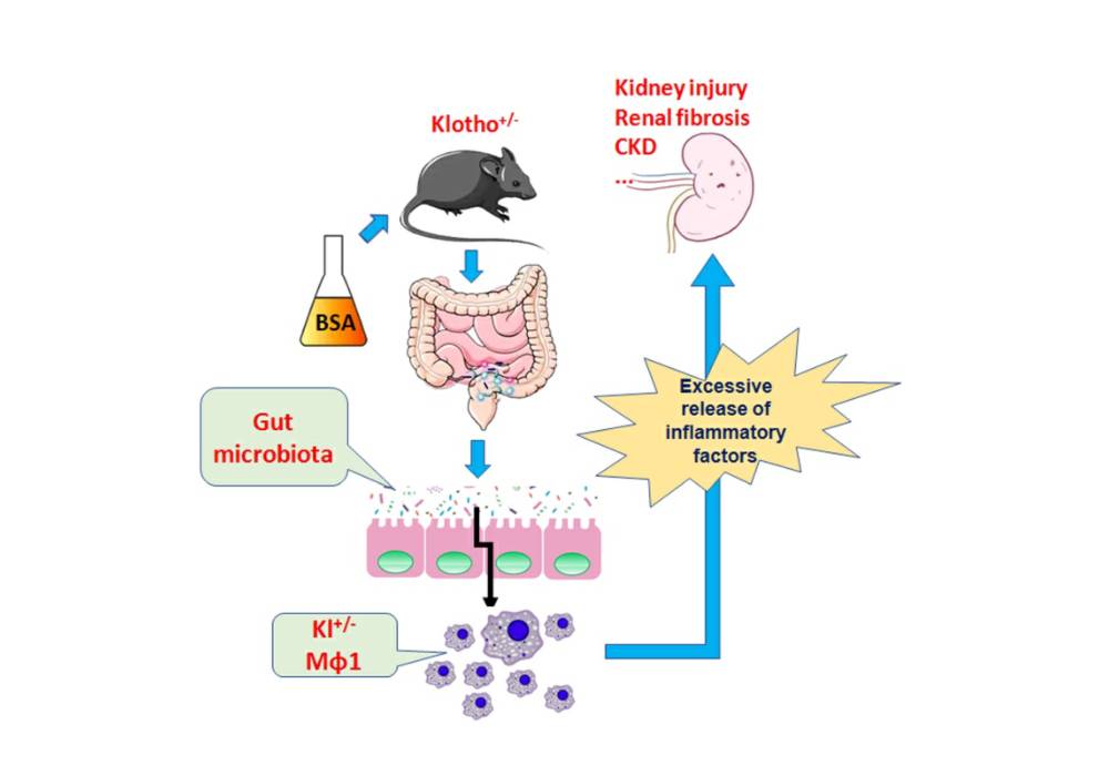 圖1.BSA通過(guò)腸道菌群-免疫軸加重klothod缺陷小鼠巨噬細(xì)胞M1激活和腎臟損傷。
