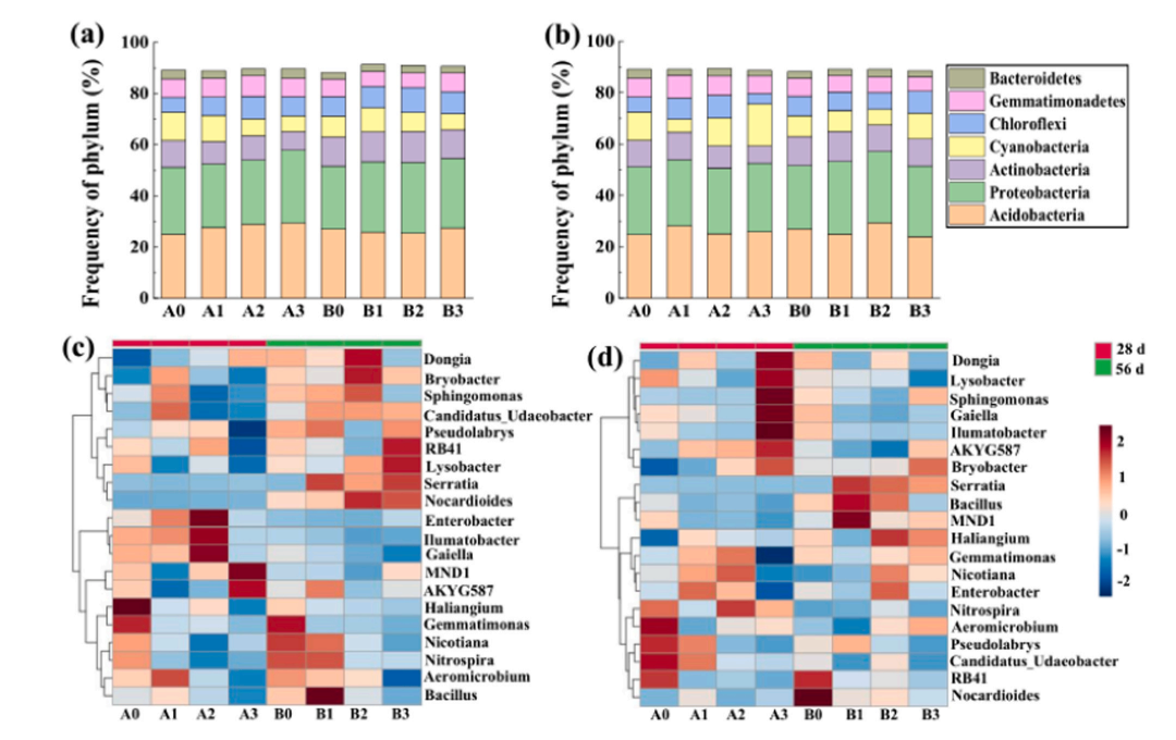 該論文通過16S rRNA基因測(cè)序、qPCR、酶活檢測(cè)以及IBR評(píng)估等方法,研究了兩種除草劑(氯酯磺草胺和雙氯磺草胺)不同濃度下所造成的土壤微生物、土壤中酶活力變化。結(jié)果表明,不同濃度的除草劑對(duì)土壤微生物群落組成造成了不同程度的影響,且兩種除草劑影響后的土壤微生物組成顯著不同。兩種除草劑對(duì)土壤內(nèi)氮循環(huán)及碳循環(huán)相關(guān)功能基因均產(chǎn)生影響,整體而言,雙氯磺草胺產(chǎn)生的效果更顯著。兩種除草劑對(duì)土壤中固氮相關(guān)酶活均有促進(jìn)作用,使用綜合生物標(biāo)志物響應(yīng)法(IBR)對(duì)他們的環(huán)境毒性進(jìn)行了比較與評(píng)估,發(fā)現(xiàn)雙氯磺草胺的環(huán)境毒性高于氯酯磺草胺。