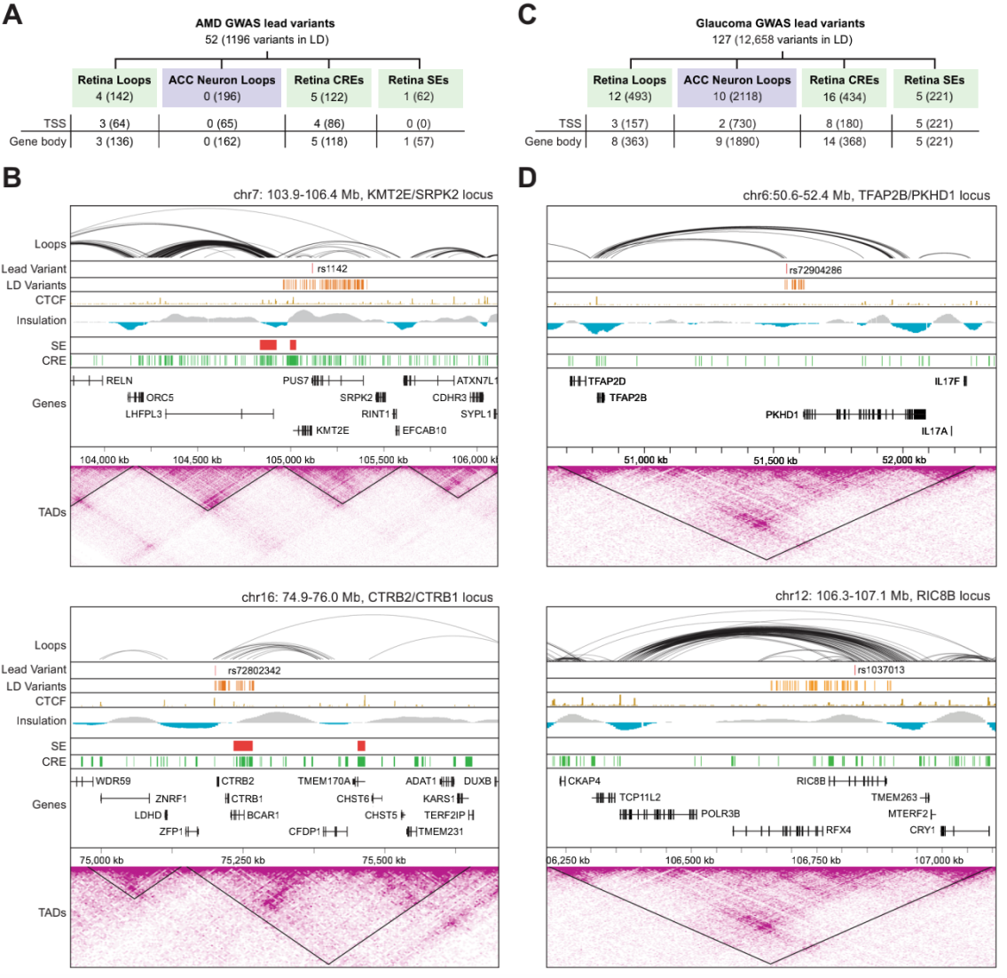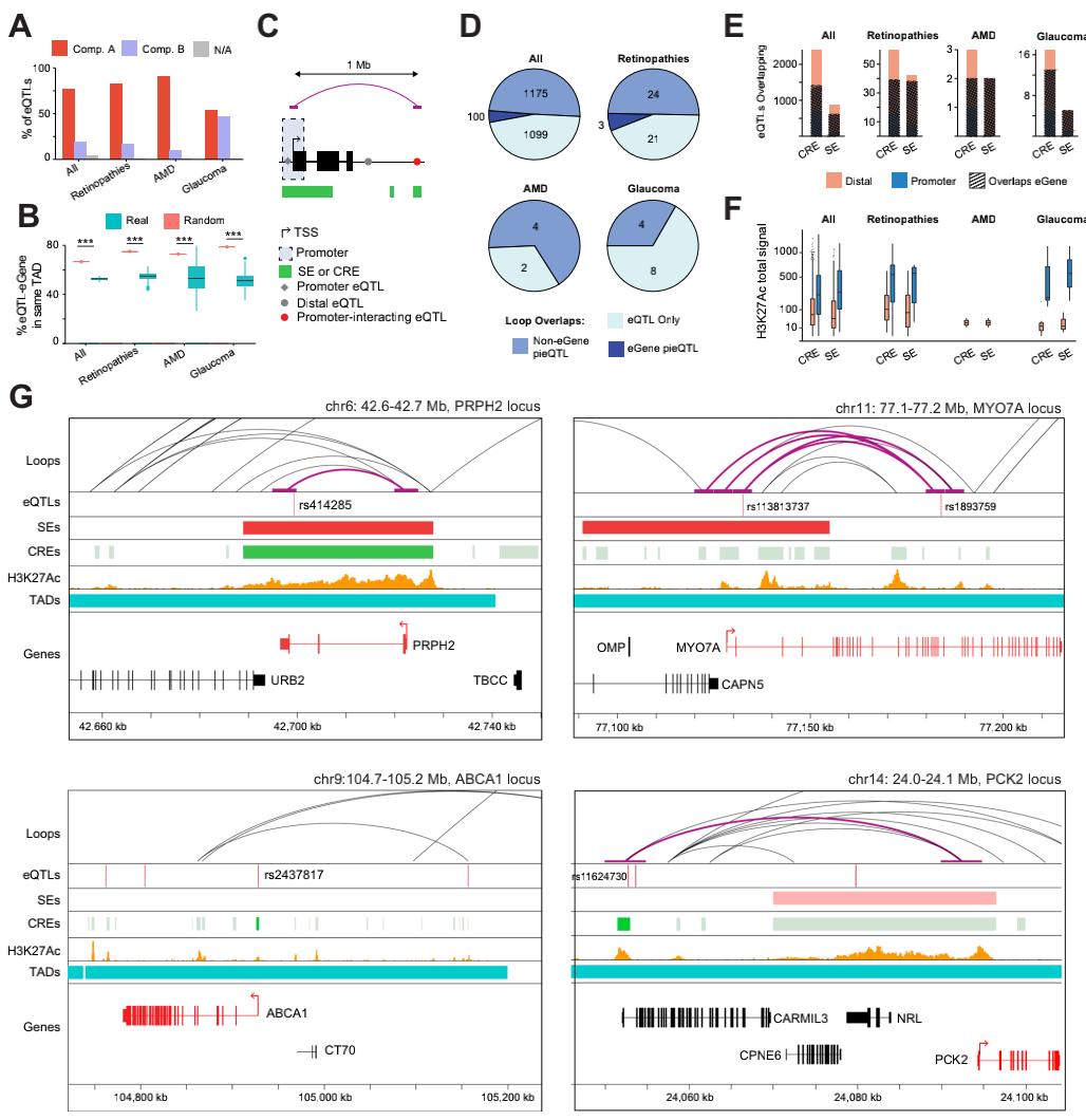 2)視網(wǎng)膜調控基因組拓撲結構與AMD和青光眼相關遺傳變異的首次詳細整合;