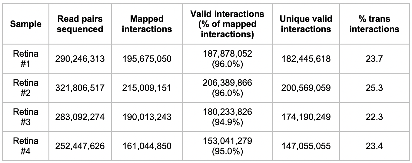 1、Hi-C測序以5kb高分辨率識別人類視網(wǎng)膜中的染色質空間構象
