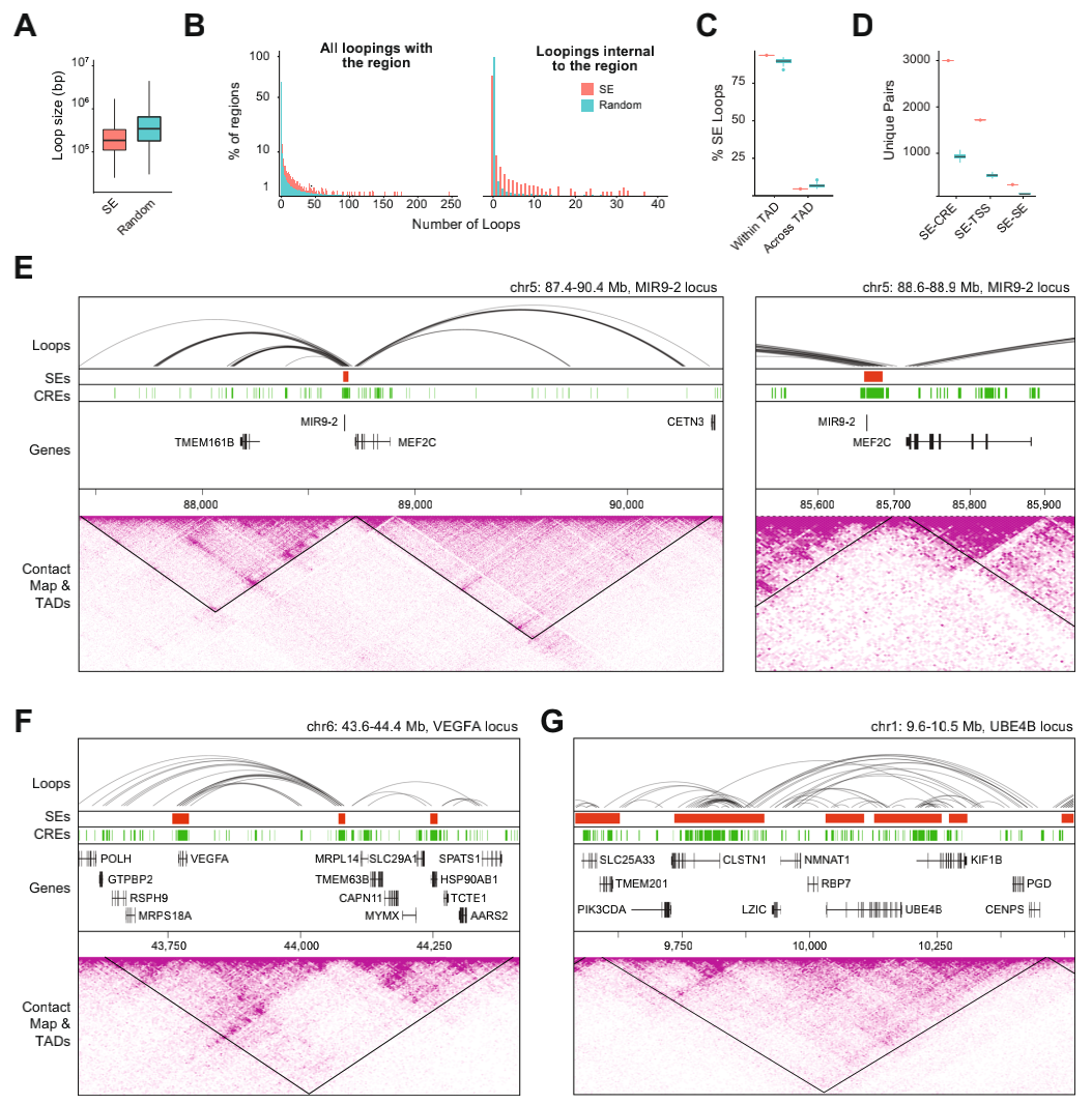 4、SE在TAD內(nèi)部loops富集并參與基因表達調控