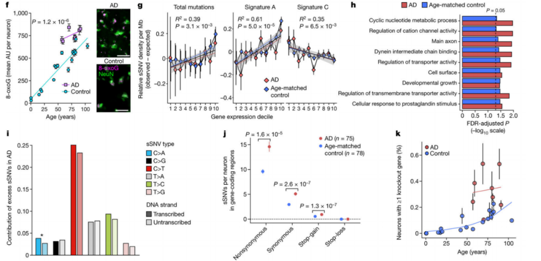 兩種不同的單細(xì)胞全基因組測(cè)序技術(shù)揭示了AD患者大腦中的興奮性神經(jīng)元積累的基因組損傷——以及可能的永久性突變——超過了僅因衰老而發(fā)生的水平,未來(lái)探索更多的體細(xì)胞突變模式解釋這些氧化性病變?nèi)绾瓮ㄟ^與衰老過程中發(fā)生的突變相互作用來(lái)?yè)p害基因組功能。
