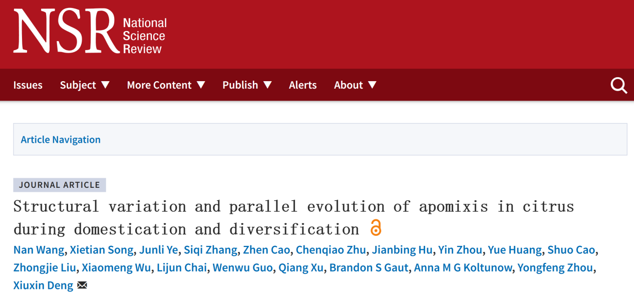 研究內(nèi)容:山金柑 ( Fortunella hindsii) 是金柑屬的一種常綠野生果樹,本研究利用山金柑品系Sy3-45為材料構(gòu)建了高質(zhì)量基因組和遺傳群體,實現(xiàn)了金柑屬無融合生殖關(guān)鍵基因的定位。結(jié)合柑橘不同屬材料的全基因組重測序數(shù)據(jù),進(jìn)一步解析了金柑屬和柑橘屬無融合生殖表型的平行進(jìn)化機(jī)制。該研究發(fā)現(xiàn),雜交起源的柑橘群體能夠通過無融合生殖來保持雜交優(yōu)勢,并導(dǎo)致無融合生殖的關(guān)鍵MITE插入以雜合子形式存在,首次提出了無融合生殖在柑橘分化和馴化過程中的重要作用。