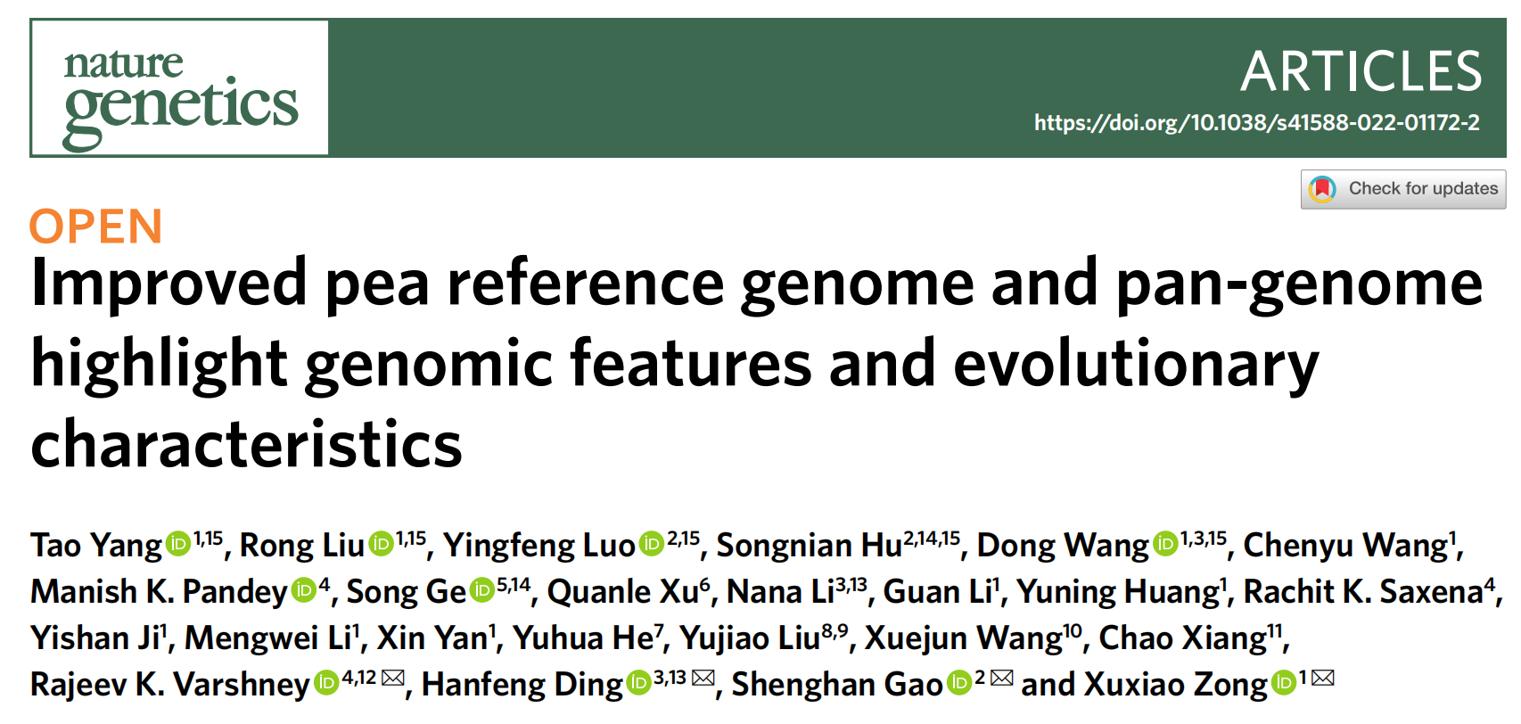 研究內(nèi)容:基于PacBio等技術(shù)構(gòu)建了中國豌豆主栽品種“中豌6號”的高質(zhì)量基因組(3.8 Gb)。通過118 個栽培和野生豌豆種質(zhì)群體分析,解決了豌豆屬物種劃分的爭議。QTL分析鑒定出與粒型、株高等相關(guān)的候選基因。隨后構(gòu)建了栽培和野生豌豆種質(zhì)的泛基因組,發(fā)現(xiàn)大部分泛基因組多樣性主要存在于不同物種和遺傳分組之間,近緣野生種和地方種表現(xiàn)出豌豆育種資源的重要潛力。該研究為豌豆起源馴化、基因挖掘、種質(zhì)創(chuàng)新和育種改良提供了寶貴資源。