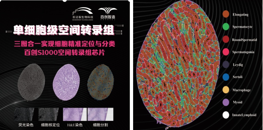 會(huì)上,百邁客生物旗下百創(chuàng)智造攜亞細(xì)胞級(jí)空間組學(xué)芯片BMKMANU S1000(百創(chuàng)S1000)細(xì)胞分割空間組學(xué)策略亮相大會(huì),百創(chuàng)S1000空間轉(zhuǎn)錄組芯片作為高分辨率空間組學(xué)中一個(gè)可以同時(shí)實(shí)現(xiàn)原片熒光染色+HE染色+原位捕獲測(cè)序的技術(shù)受到了了各位與會(huì)專(zhuān)家的關(guān)注。