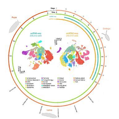 圖2-果蠅發(fā)育的單細(xì)胞時(shí)空多組學(xué)圖譜