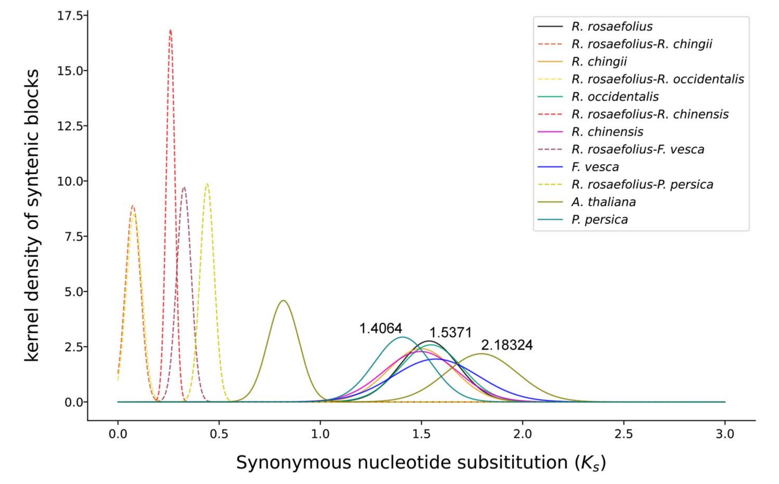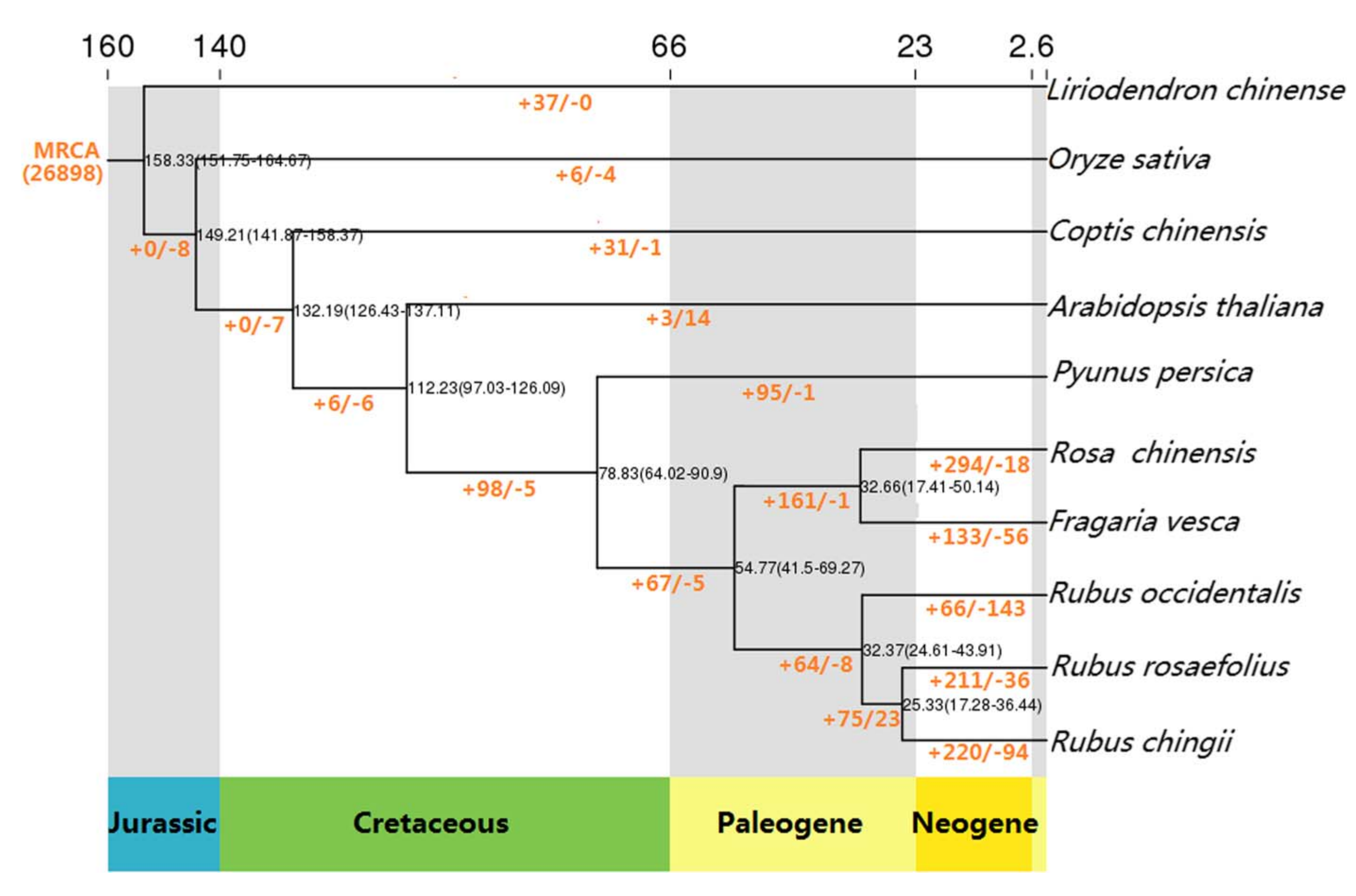 全基因組復制(WGD)分析發(fā)現(xiàn)。薔薇科其他成員與西方薔薇科同屬的共同祖先曾發(fā)生過WGD事件。