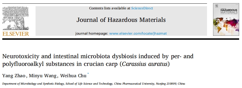 8月22日,中國藥科大學儲衛(wèi)華團隊以淡水水生動物鯽魚為模型對全氟和多氟烷基物質(PFAS)的神經毒性和菌群紊亂開展了深入研究,研究成果以題為“Neurotoxicity and intestinal microbiota dysbiosis induced by per- and polyfluoroalkyl substances in crucian carp (Carassius auratus)”發(fā)表在Journal of Hazardous Materials上。