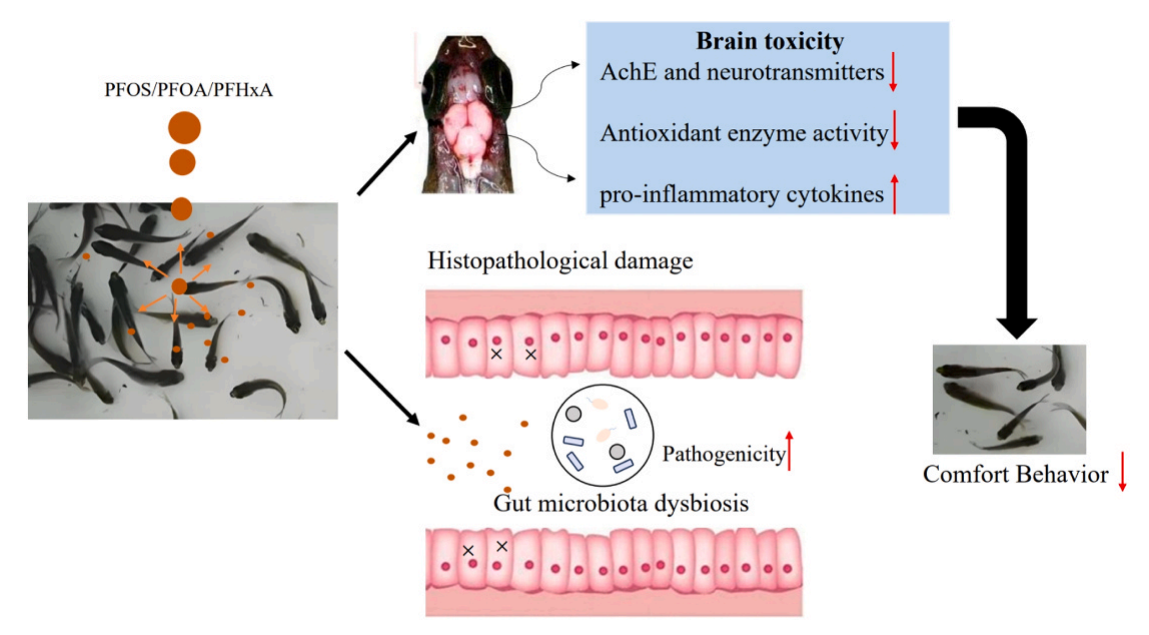 該實驗主要研究了PFAS對鯽魚神經系統(tǒng)和腸道菌群的毒性。研究結果表明,環(huán)境相關濃度的PFAS可以引起鯽魚腸道微生物群的破壞,并進一步引起大腦神經化學和行為模式的變化。這些變化可能與大腦的氧化損傷以及應激和炎癥相關基因的表達有關。這些結果為評估PFAS污染物在水生環(huán)境濃度下的毒性提供了見解。