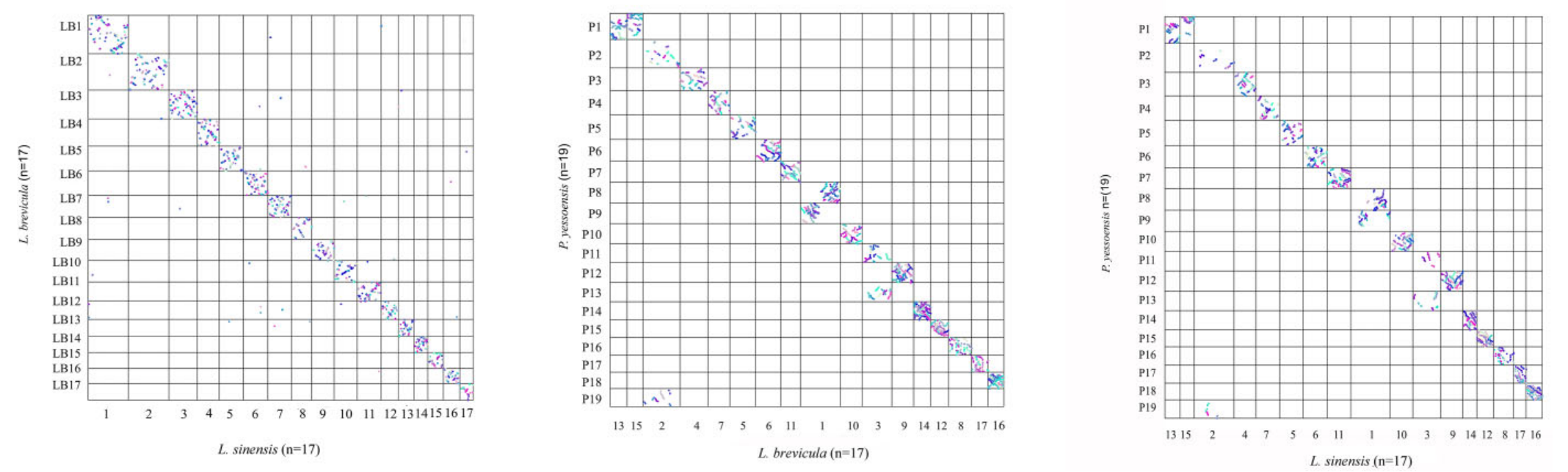 圖2-短濱螺、中華濱螺和蝦夷扇貝兩兩間宏觀共線性散點(diǎn)圖