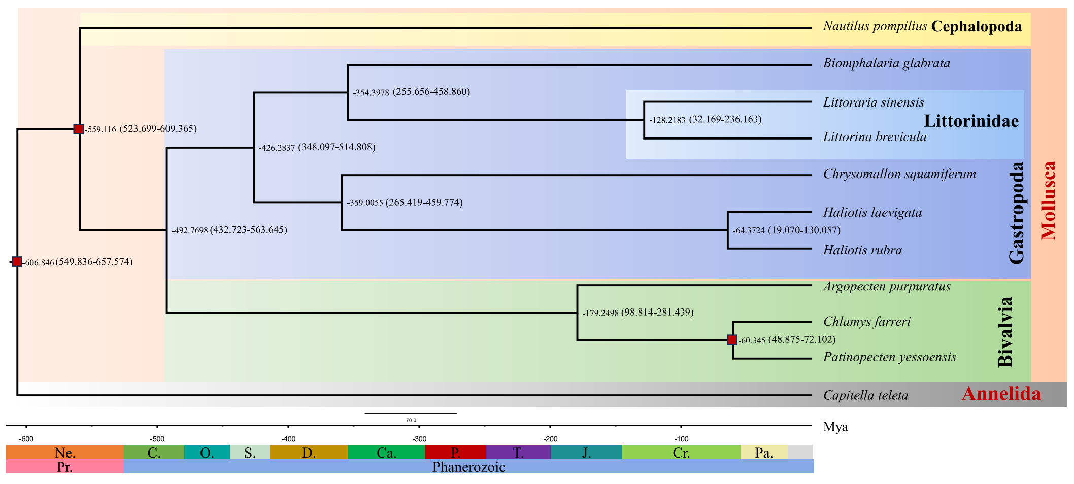 通過(guò)比較基因組學(xué)分析構(gòu)建了包括兩種濱螺在內(nèi)的11個(gè)物種的系統(tǒng)發(fā)育樹,并估算兩種濱螺的分化時(shí)間大約在128.22Mya前。進(jìn)一步的研究結(jié)果表明與刺激反應(yīng)、代謝過(guò)程、先天免疫和抗氧化反應(yīng)相關(guān)的基因或基因家族可能在濱螺應(yīng)對(duì)潮間帶多種環(huán)境因子脅迫的過(guò)程中發(fā)揮著重要作用,受損核酸和蛋白的修復(fù)或降解可能是濱螺在多重壓力下抵抗細(xì)胞凋亡、維持細(xì)胞內(nèi)穩(wěn)態(tài)的主要方式。相關(guān)研究結(jié)果為潮間帶無(wú)脊椎動(dòng)物適應(yīng)性進(jìn)化分子機(jī)制的后續(xù)研究提供了基礎(chǔ)。