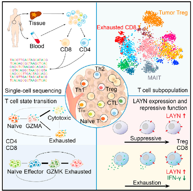 2017年,張澤民院士研究組,通過大規(guī)模單細胞測序技術(shù)對肝癌相關(guān)T淋巴細胞進行分析,首次在單細胞水平上描繪肝癌微環(huán)境中免疫細胞圖譜,發(fā)現(xiàn)了肝癌免疫療法的潛在靶點,也為我們從多角度系統(tǒng)性理解肝癌T淋巴細胞特征奠定了基礎。(2017,Cell,Landscape of Infiltrating T Cells in Liver Cancer Revealed by Single-Cell Sequencing)