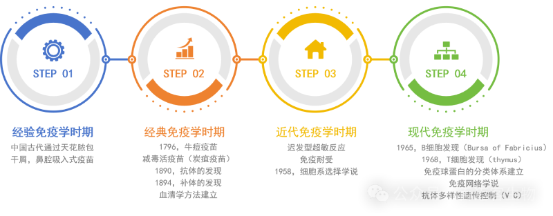 這是最早關(guān)于人類免疫學應用的記錄。公元前?400?年,中國可能已有人痘苗接種預防天花的方法,到?16?世紀明朝隆慶年間,人痘接種法得到重大改進并廣泛應用,17?世紀傳入俄國、朝鮮、日本、土耳其和英國等國家,至18世紀末結(jié)束經(jīng)驗免疫學時期,隨后免疫學又經(jīng)歷了經(jīng)典免疫學時期,近代免疫學時期,直到1965年/1968年?B細胞/T細胞的發(fā)現(xiàn)開啟了現(xiàn)代免疫學時期。