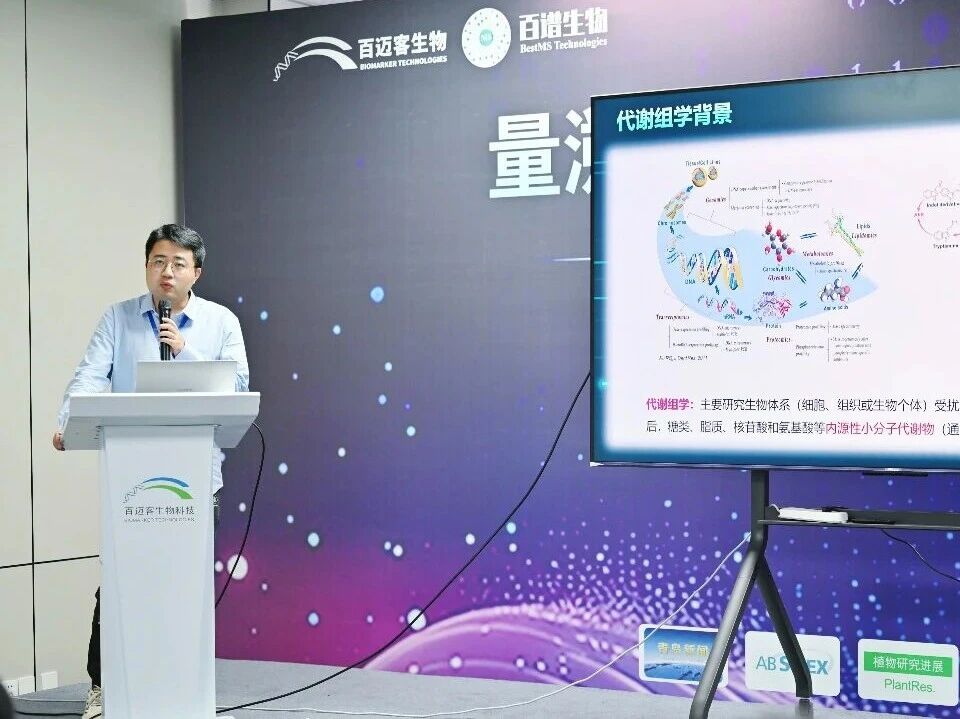 2025年9月17日,由百邁客生物與百譜生物聯(lián)合主辦的 “植物廣靶定量代謝組學(xué)發(fā)布會(huì)” 在青島隆重舉行。中國(guó)科學(xué)院海洋研究所段德麟研究員、北京大學(xué)現(xiàn)代農(nóng)業(yè)研究院王旭教授、中國(guó)科學(xué)院海洋研究所張立濤副研究員、SCIEX中國(guó)市場(chǎng)開(kāi)發(fā)經(jīng)理方晶晶受邀出席,會(huì)議同步開(kāi)啟線上直播,吸引超3000人次參與,引發(fā)行業(yè)廣泛關(guān)注。本次發(fā)布會(huì)推出的植物廣靶定量代謝組學(xué)產(chǎn)品,成功突破非模式植物研究瓶頸,為植物基礎(chǔ)研究與農(nóng)業(yè)產(chǎn)業(yè)升級(jí)注入全新動(dòng)能。