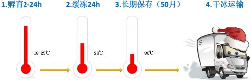 7)運(yùn)送方式:將凍存管置于密封性好的塑料袋中,用膠布纏到冰袋上,并在泡沫盒中裝入 足量的干冰進(jìn)行運(yùn)輸