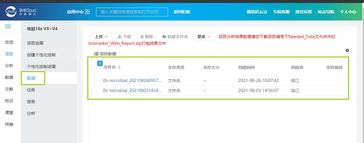 微生物基因組:MicroG_年月日編號數(shù)據(jù)下載:上述報告查找頁面 – 點(diǎn)擊左側(cè)數(shù)據(jù) – 進(jìn)入相應(yīng)數(shù)據(jù)文件夾