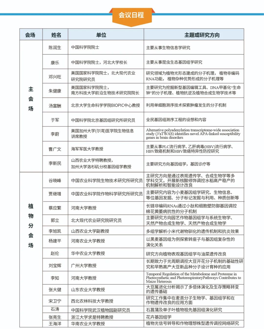 隨著基因組組裝(GA)、種質(zhì)資源鑒定(GC)、基因功能鑒定(GI)、基因組育種(GB)、基因編輯(GE)的5G育種策略快速發(fā)展,以高通量測序技術(shù)為基礎(chǔ)的組學(xué)研究已經(jīng)廣泛應(yīng)用于植物研究的各個領(lǐng)域。本次大會特邀植物功能基因組學(xué)、系統(tǒng)與進(jìn)化植物學(xué)、表觀遺傳學(xué)等熱點領(lǐng)域?qū)<引R聚一堂,分享植物研究的前沿技術(shù)、經(jīng)驗成果及發(fā)展前景。