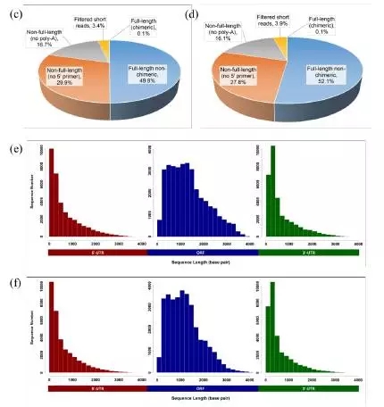 共獲得802,358個(gè)ROIs序列,其中有1.466,034全長(zhǎng)非嵌合(FL)序列和316,000非全長(zhǎng)(nFL)序列。
