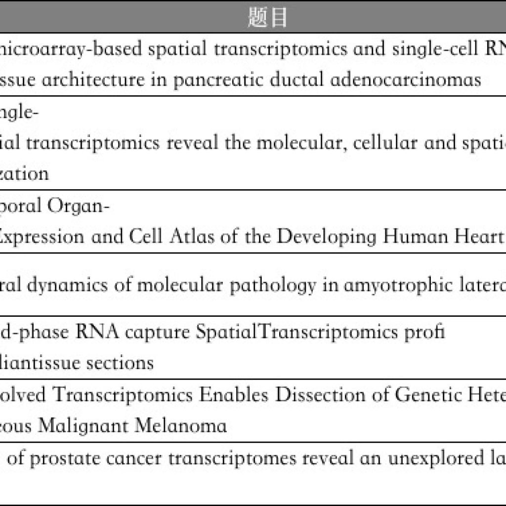 | 2018.11 | Nat Protoc | Barcodedsolid-phase RNA capture SpatialTranscriptomics pro?ling mammaliantissue sections | 11.334 | 實驗方法 |